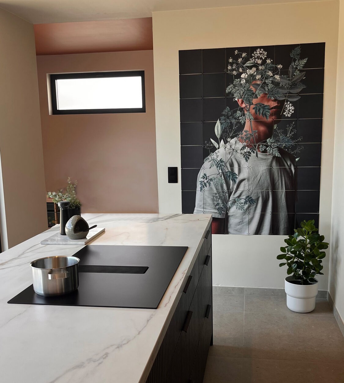 De Novy Easy, vlak geïntegreerd in het werkblad, past perfect binnen deze warme keukenstijl. Met zijn strakke vormgeving en geïntegreerde afzuiging blijft het werkblad visueel rustig. In combinatie met donkerbruine kasten en aardse materialen ontstaat een sfeer die uitnodigt tot vertraging. Slow mornings beginnen hier met een design die ademruimte geeft.
